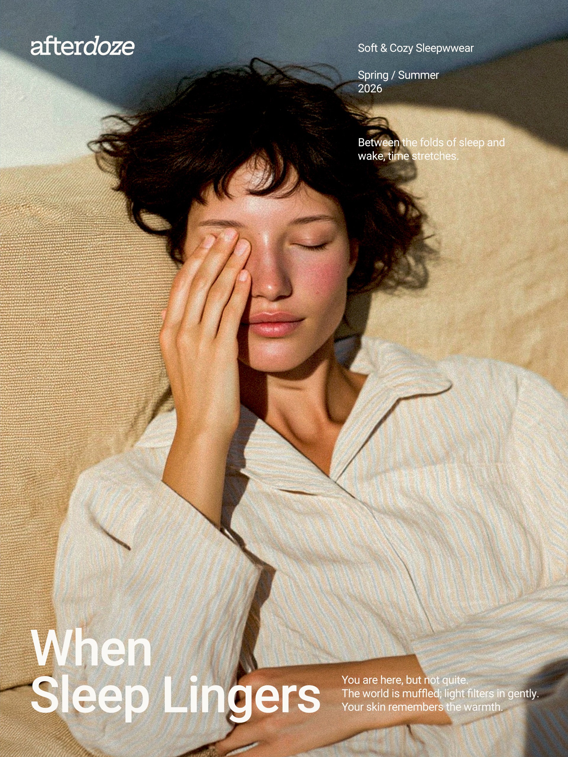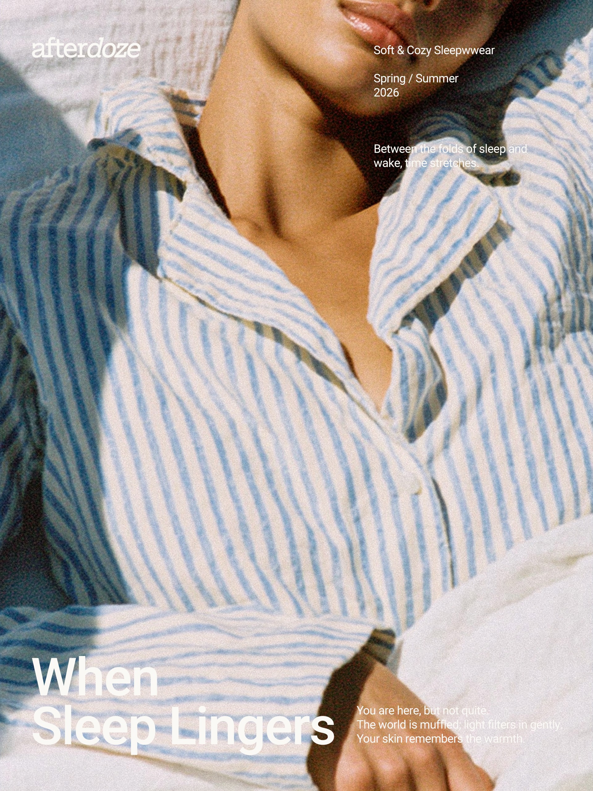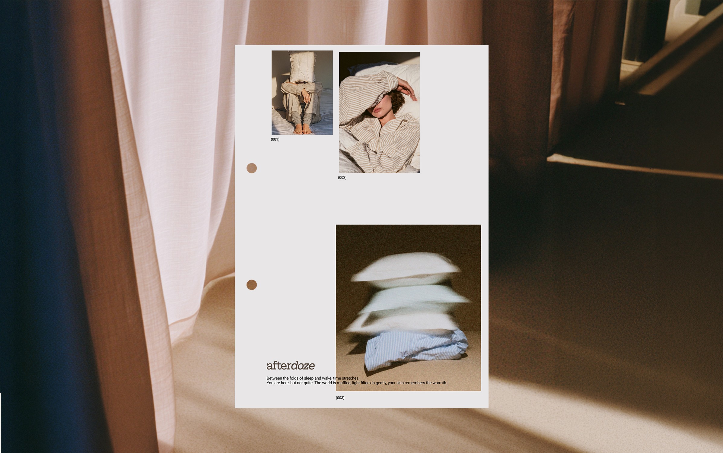 When Sleep Lingers. afterdoze is built around the hazy threshold between sleep and wakefulness. The brand explores the quiet interval where the body slowly loosens and the senses gently return, creating soft objects for the suspended space where dreams and reality overlap.