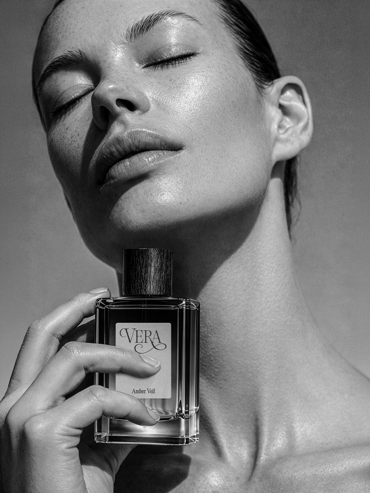 The art direction was developed to translate Vera into a cinematic and sensorial visual world. Focusing on skin, light, shadow, and material contrast, the campaign imagery positions the fragrance as an object of quiet desire. AI-assisted visual production was used throughout the process to shape a mood that feels intimate, editorial, and understatedly luxurious.